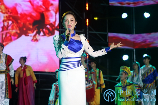 5月26日,“走进美丽兴化·礼赞伟大时代”中国电影家协会文艺志愿服务团慰问演出活动在江苏省兴化市举办。图为陈丽媛演唱歌曲《载歌载舞》。中国文艺网 张钰童 摄
