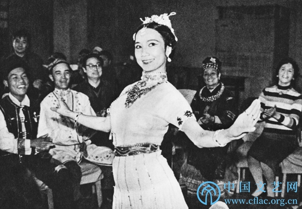 联欢会上的“金孔雀”也飞到了文代会的会议休息期间。刀美兰说,第一张照片,就是大家怀着浓厚的兴趣,继续问她孔雀舞的步法、手势,以及傣族舞蹈的各种问题。刀美兰非常耐心地给大家边讲解边示范,最后干脆就给大家跳了起来。现场的各个民族的舞蹈家,则在欢笑声中为刀美兰击掌伴舞。精彩的舞蹈、热烈的掌声、欢快的气氛,是第四次全国文代会的一个无比生动的侧面。