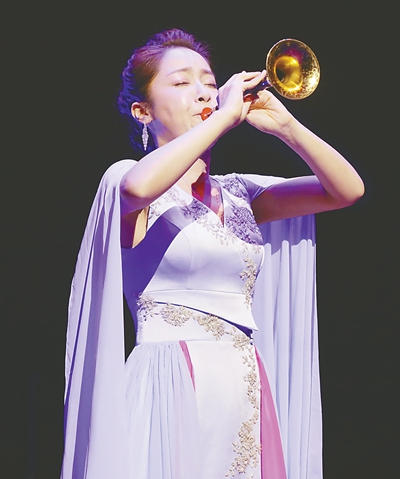没过多久,她又再次让人惊艳。5月23日,上交音乐厅座无虚席,音乐会在《风入松——为D调高音唢呐而作》高亢的旋律中拉开帷幕。刘雯雯借助京剧、河南豫剧等戏曲音调表达方式,演绎出不同风格的入调与不同织体的色彩变化。随后,她演绎了唢呐二重奏《泥老板》、唢呐协奏曲《敦煌魂》、唢呐协奏曲《麒麟颂》等,都是“大分量”的作品,而且因为在小厅,与观众咫尺间,一架钢琴伴奏,足以显示其功力。
