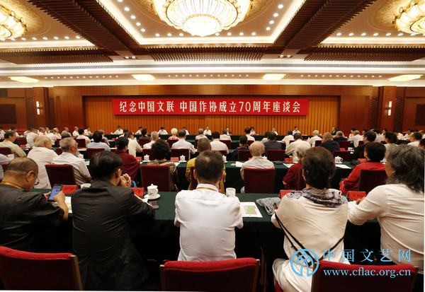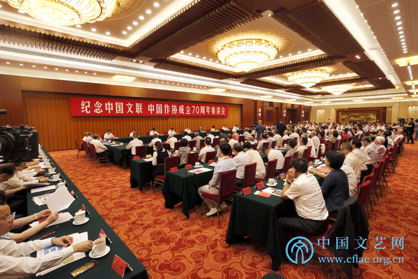 7月16日,纪念中国文联、中国作协成立70周年座谈会在人民大会堂举行。图为座谈会现场。中国文艺网 高晴 摄