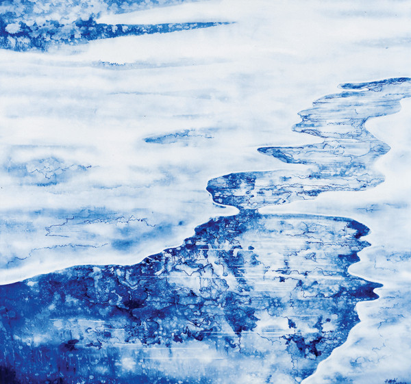 青花瓷是用含氧化钴的矿物为颜料在泥坯上绘画、上罩透明釉经高温烧制而成。干道甫在江西景德镇陶瓷大学任教并兼顾创作,此次展出的是他近十年来的作品,他在创作中尝试寻求当代青花艺术的跨文化表达,以青和白之间的变幻构筑诗意般的精神境界,作品洋溢着斑驳之美和生命气息,为当代艺术提供了一种全新的表达和呈现方式。图为展出作品。