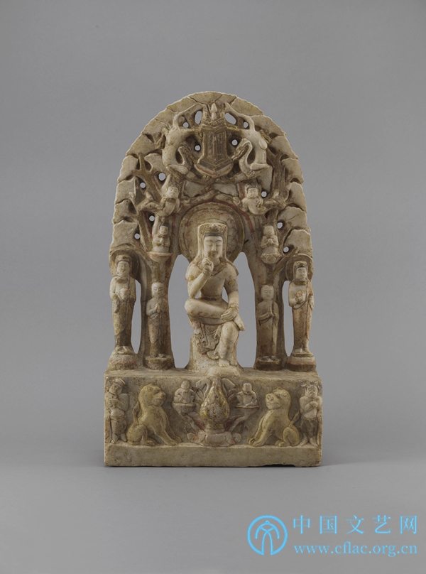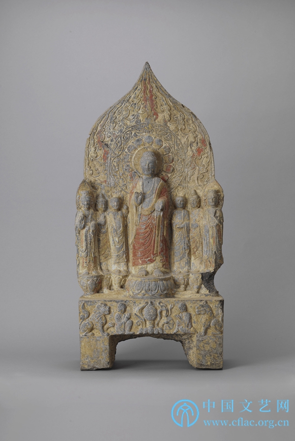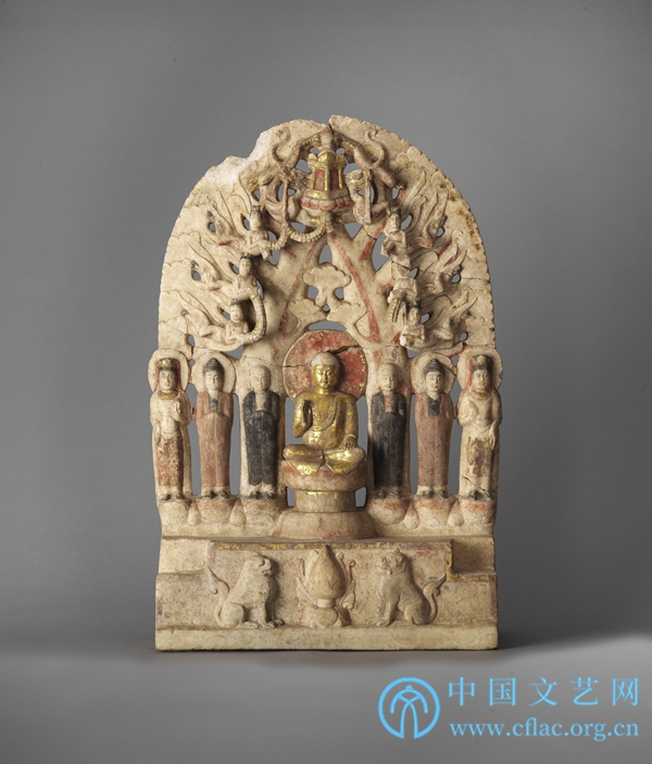 北朝时期,邺城作为当时中国佛教中心之一,高僧云集,寺院林立。本次展览以邺城北吴庄佛造像埋藏坑出土佛像精品为主体,重点展示佛像蕴含的历史与艺术价值,探讨邺城佛造像艺术在北朝时期发生的演变历程。中国佛教造像的代表性特征在这里都有呈现,如北魏永平三年(510年)“张雄造观世音像”、北魏“立佛三尊像”展现了北魏时期“秀骨清像”与“褒衣博带”的时代风格,邺城佛造像独特的题材“龙树背屏”造像,则具有典型地域特色,造像背屏由两株相交的菩提树构成,在中国古代佛造像艺术史上独树一帜。据了解,作为十六国北朝时期北方政权的中心,邺城集中了大量能工巧匠,在继承传统雕刻技艺的基础上,因材施雕,赋予了佛造像不同的神韵。北齐的“坐佛五尊像”不仅有精雕细琢、极具地域风貌的透雕龙树背屏,还将流畅的石雕线条与彩绘贴金的装饰融为一体,让造像更具艺术魅力。北齐的“覆钵塔”更是不可多得的佛造像精品,造型较为完整,通体彩绘贴金,雕刻内容十分丰富。