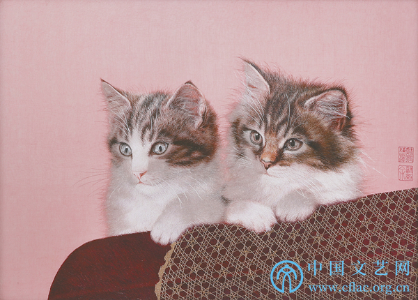 白猫戏螳螂 45.5cm×73cm 顾文霞