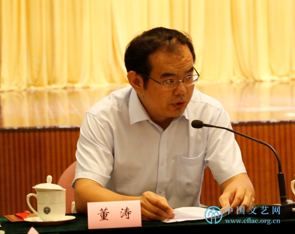8月21日,由中国文联组织编写的《2018中国艺术发展报告》在京召开出版发布会。图为中国文联党组成员、书记处书记董耀鹏在会上讲话。中国文艺网 胡艳琳摄