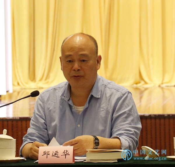 8月21日,由中国文联组织编写的《2018中国艺术发展报告》在京召开出版发布会。图为中国民协分党组书记、驻会副主席兼秘书长邱运华在会上发言。中国文艺网 胡艳琳摄