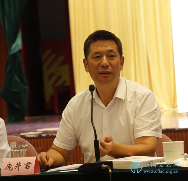 8月21日,由中国文联组织编写的《2018中国艺术发展报告》在京召开出版发布会。图为中国文联理论研究室主任、中国文联文艺评论中心主任庞井君主持会议。中国文艺网 胡艳琳摄