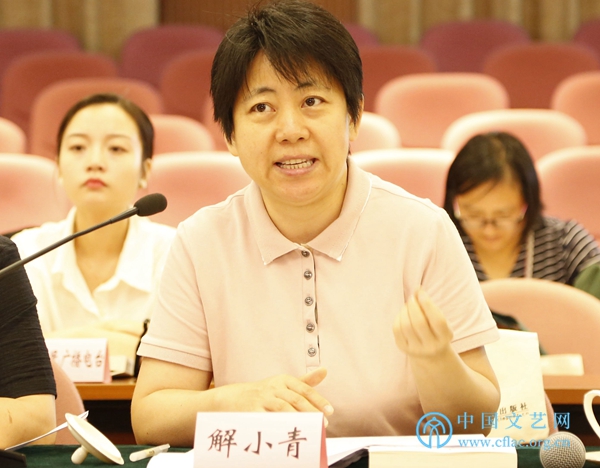 8月21日,由中国文联组织编写的《2018中国艺术发展报告》在京召开出版发布会。图为首都师范大学中国书法文化研究院教授解小青在会上发言。中国文艺网 胡艳琳摄