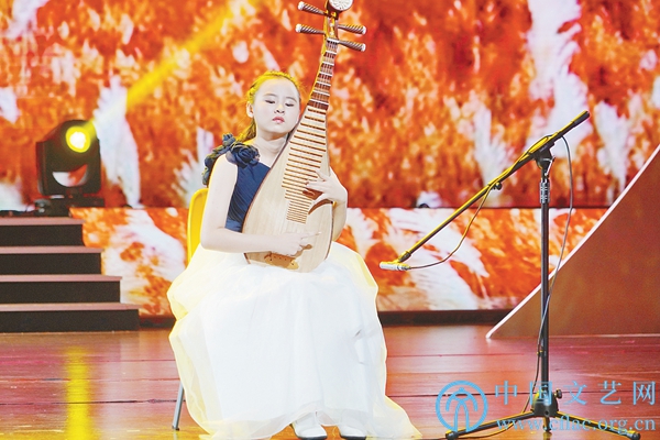 王雅祺在中国音乐小金钟2019全国琵琶展演闭幕音乐会上弹奏《渭水情》 王 渝 摄