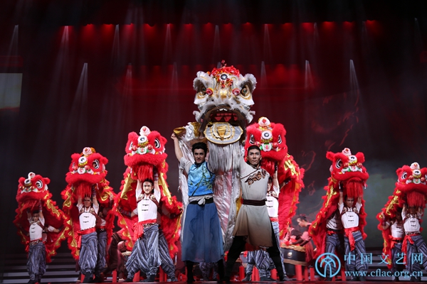 9月4日,由中国文学艺术界联合会、中国戏剧家协会联合主办的“为祖国放歌——中国文联、中国剧协庆祝中华人民共和国成立70周年戏剧晚会”在北京梅兰芳大剧院举行。图为广州歌舞剧院有限公司演员表演舞剧《醒·狮》片段“双狮舞”。中国文艺网 刘青摄