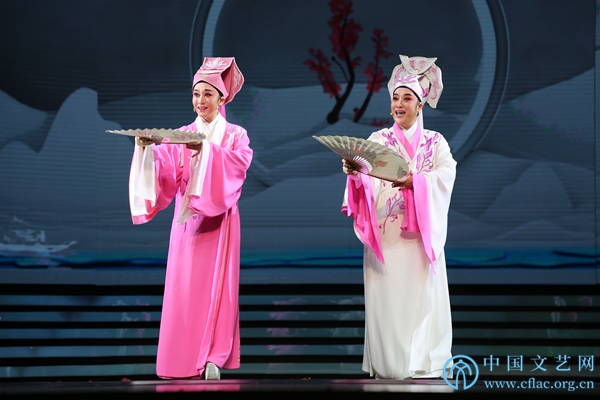9月4日,由中国文学艺术界联合会、中国戏剧家协会联合主办的“为祖国放歌——中国文联、中国剧协庆祝中华人民共和国成立70周年戏剧晚会”在北京梅兰芳大剧院举行。图为国家一级演员、中国剧协副主席、梅花大奖获得者茅威涛,国家一级演员章益清表演越剧《梁山伯与祝英台》选段。中国文艺网 刘青摄