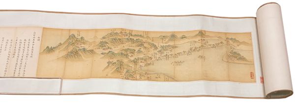 这幅地图虽然并未署名,但我们可以其它线索推知其作者,本图与浙江西湖博物馆所藏清代关槐所绘《清乾隆西湖行宫图》画面、文字内容都一致,《清乾隆西湖行宫图》为卷轴装,绢本彩绘,长950厘米,宽34.5厘米。而《西湖行宫图》长518厘米,宽14厘米,应该是这幅图的缩绘版。《清乾隆西湖行宫图》由内务府造办处舆图房负责绘制,关槐执笔,图上盖有乾隆御印。由此我们也可推想,清代宫廷已有专门的舆图绘制机构,而帝王出巡的舆图绘制,也形成了较为完善的流程。同一幅舆图可能有多种版本,较大的版本适于收藏和观赏,而较小的版本则利于携带,可用于随身导览。