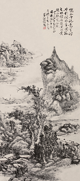 “懒悟”二字亦或可解为“赖吾之心”,心斋坐忘,思接千载,接续中国文化史上不绝如缕的画僧传统。懒悟的山水画初从四王入手,然后渐涉宋元,降而明清;后独钟佛门石涛、石溪、渐江诸家,并师造化。于皖中胜景有心会,融皖西山水之雄奇,皖南山水之秀丽,终成二十世纪后期新安山水画派杰出代表。其画风格独特,极富个性和禅机;冷逸老辣,萧散出尘,毫无人间烟火气;观之令人如服清凉散,如聆梵音;故备受当代诸名家推重。林散之先生诗赞曰:“人间懒和尚,天外瘦书生”。