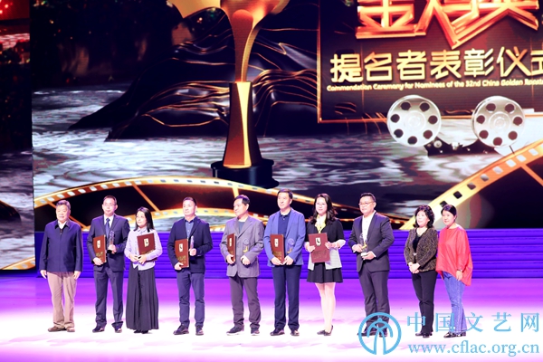 11月22日,第32届中国电影金鸡奖提名者表彰仪式在厦门举行。图为最佳美术片提名者合影。中国文艺网 韩雪竹 摄