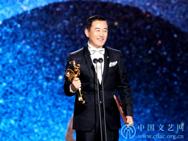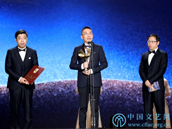 11月23日,第32届中国电影金鸡奖颁奖典礼暨第28届中国金鸡百花电影节闭幕式在福建厦门举行。图为最佳故事片《流浪地球》影片代表发表获奖感言。