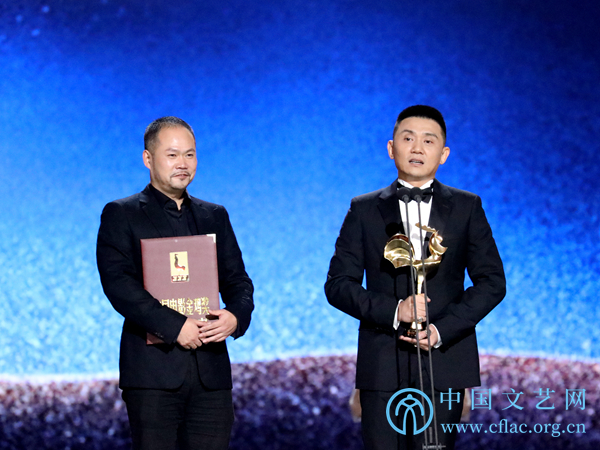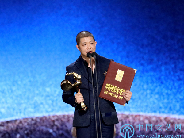 11月23日,第32届中国电影金鸡奖颁奖典礼暨第28届中国金鸡百花电影节闭幕式在福建厦门举行。图为最佳导演处女作文牧野(《我不是药神》)发表获奖感言。