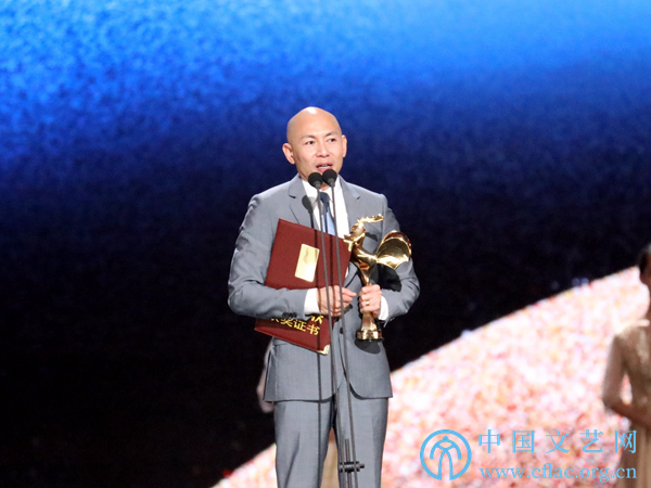 11月23日,第32届中国电影金鸡奖颁奖典礼暨第28届中国金鸡百花电影节闭幕式在福建厦门举行。图为最佳摄影曹郁(《妖猫传》)发表获奖感言。
