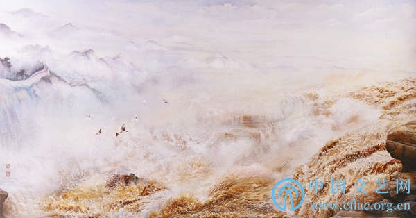 从2000年开始,我们绣了《世纪和平——百鸽图》,表达世界和平的主题;后来绣了《我爱中华》,表达56个民族大团结的主题;再到2008年,我和朱龙泉老师一起向北京奥运会献礼,绣了《和谐——百年奥运中华圆梦》;2013年,习近平总书记提出“一带一路”倡议,我带领团队花三年时间创作了《丝绸之路》系列(《西出长安》和《满载而归》,其中《满载而归》已被中国美术馆收藏);2018年为首届上海进博会主会场迎宾厅创作苏绣《玉兰飘香》……这些都是有时代性的。今年是新中国成立70周年,我们把长城、黄河、长江这些代表性的中华符号,用刺绣的方法来演绎和表现,绣了《江山多娇》《锦绣河山》。从苏绣的题材、内容到尺幅、形式,都不拘于传统,而是关注国家的发展建设和对外交往。时代造就了我,我要回报社会。