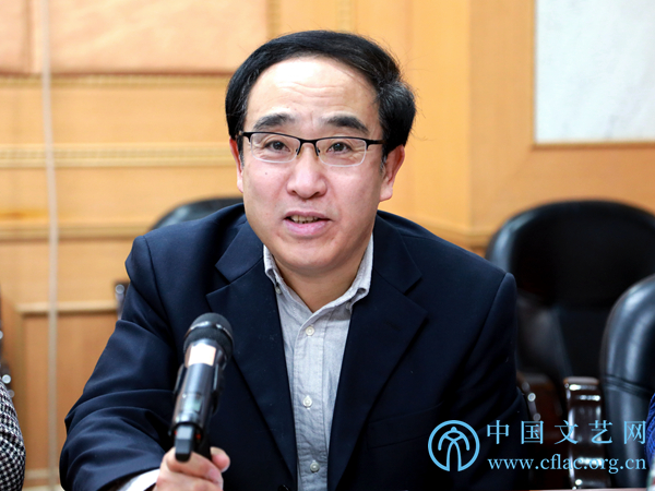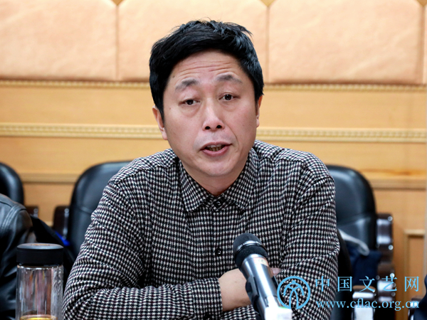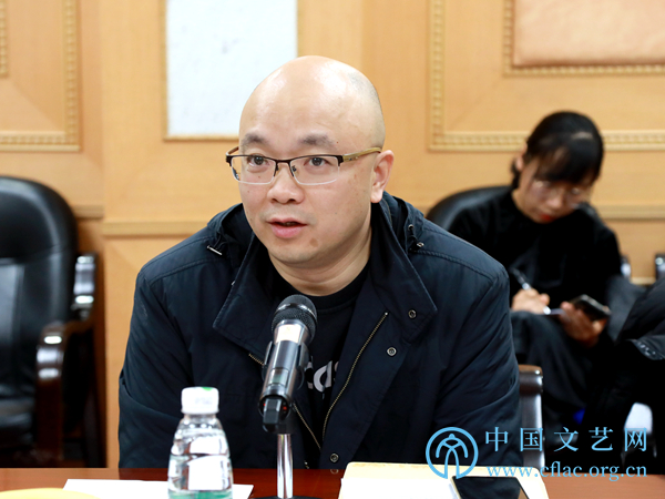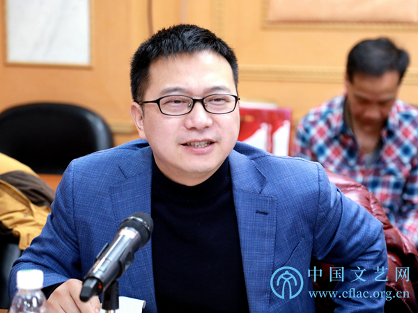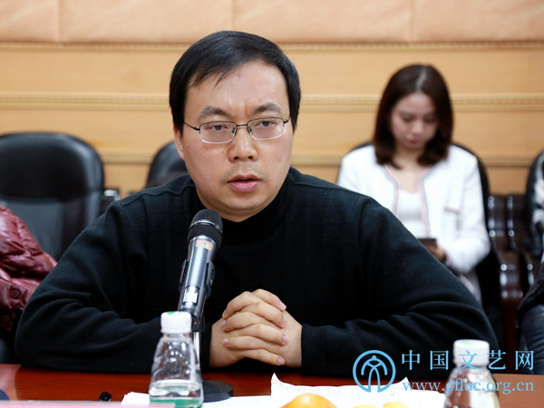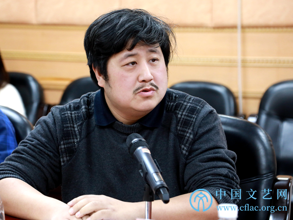 1月12日,电影《拉住你的手》剧本研讨会在京举行。图为中国文联文艺评论中心副主任、中国文艺评论家协会副秘书长周由强发言。中国文艺网 韩雪竹摄