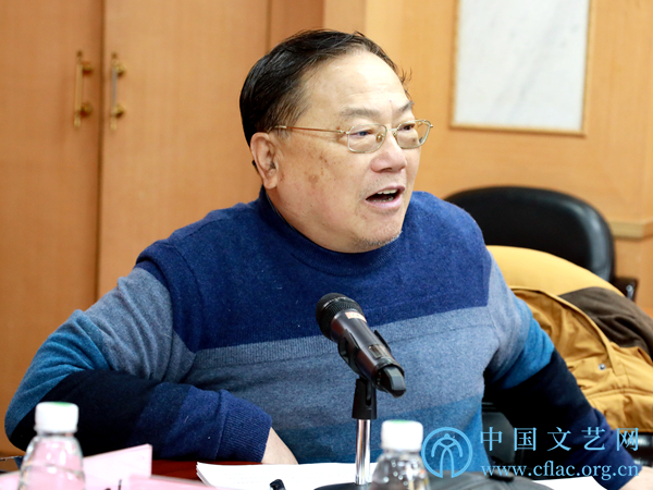 1月12日,电影《拉住你的手》剧本研讨会在京举行。图为中宣部剧本规划中心原主任、中国影协电影文学创作委员会主任张思涛发言。中国文艺网 韩雪竹摄