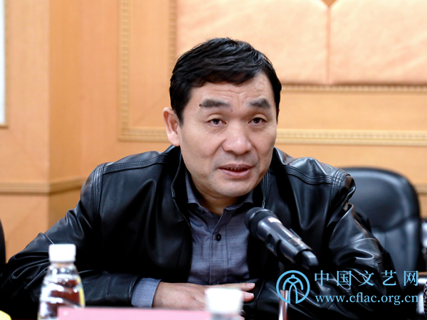 1月12日,电影《拉住你的手》剧本研讨会在京举行。图为最高人民法院影视中心主任田水泉发言。中国文艺网 韩雪竹摄