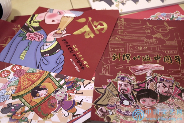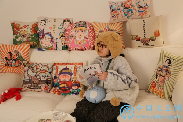 王竞男从传统绵竹年画之中取材,选取门神、侍女、传说故事等元素,运用更贴合年轻人欣赏口味的表现技法——流畅洗练的线条勾勒、鲜艳饱满的色泽、生动夸张的造型,打造出系列萌系卡通人物等形象。在她的工作室,随处摆放着她和伙伴们创作的创意年画作品,侍女福字、门神海报、鼠年生肖图,还有年画靠枕、冰箱贴、布艺手工等文创作品,将传统与现代相契合、艺术性与实用性相结合,让人耳目一新。
