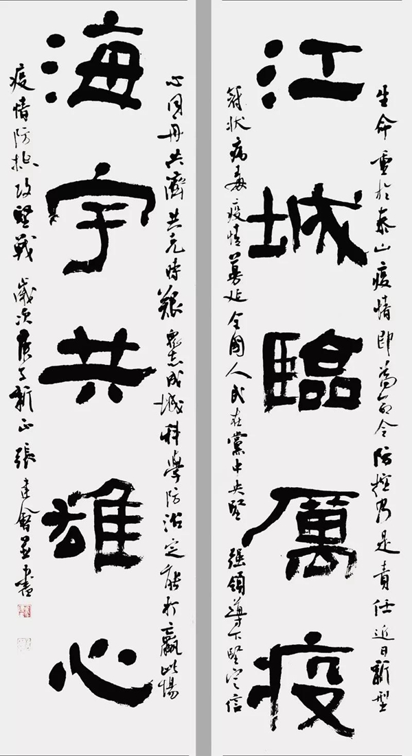 此外,天津市楹联学会也向全市楹联组织和联友发出了《关于广泛开展防控感染、抗击疫情楹联创作的通知》,号召全市各级楹联组织和广大联友迅速行动起来,充分运用两行文字艺术表现形式,反映在党的坚强领导下,天津各条战线防控抗击疫情的感人事迹,鼓舞士气、振奋精神,表达津门广大联友与全市人民并肩作战、共度时艰的决心和信心。征选出的优秀作品,将邀请书法名家统一书写装裱后转赠给防控抗击疫情突出贡献者。