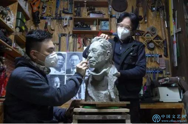 泥塑《无畏逆行者——钟南山院士》(作者:简锡昭、简振麒)