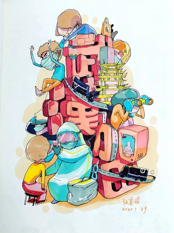 《武汉加油 众志成城 抗击病毒》 鲁迅美术学院