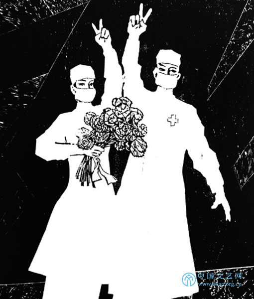 2002年“非典”期间彦涵创作的木刻《白衣战士》