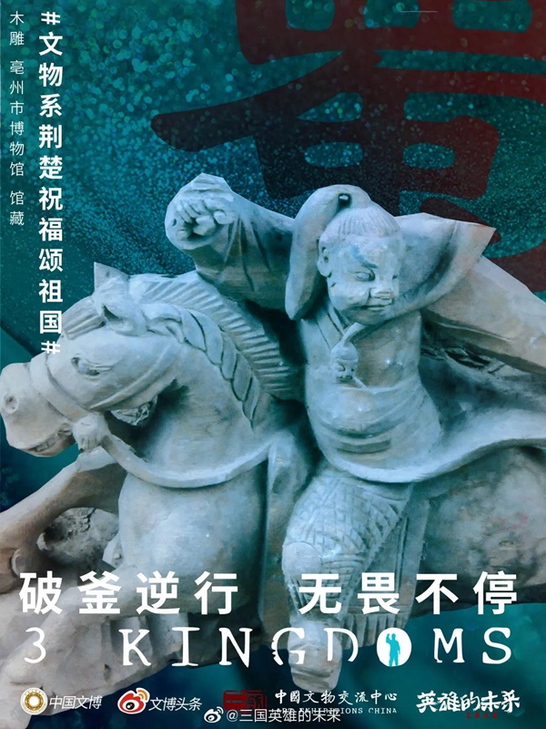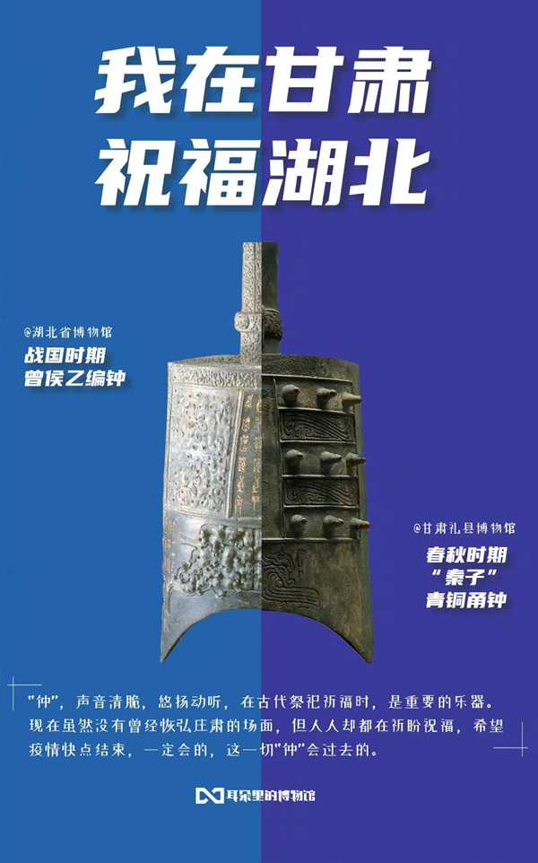 白衣裹热血的“白釉碗”、长毋相忘的“银带钩”,击缶而歌的“青铜冰鉴缶”,祝愿平安喜乐的“甜白釉梅瓶”......2020年年初,新冠肺炎疫情肆虐全国之际,微博联合@中国文博 及海内外100多家文博机构组织开展“文物系荆楚 祝福颂祖国”祝福接力活动,各地博物馆纷纷拿出镇馆之宝,制作成精美海报,中华瑰宝接力鼓劲,用五千年文化底蕴为抗疫行动汇聚精神力量,通过丰富的文物展示传递美好的祝福和必胜的信念。 近日,中国文艺网将这批作品汇总编辑,制作推出文博战疫系列高清海报大赏,今日推出第二期“九州同心”,以此为正在进行的疫情防控阻击战贡献心力。