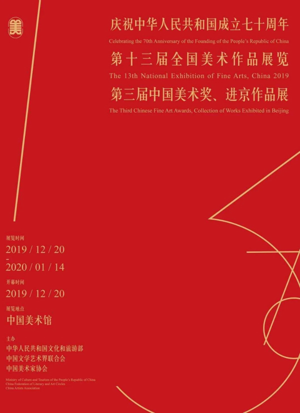 创办于1949年的全国美术作品展览,每五年一届,由中华人民共和国文化和旅游部、中国文学艺术界联合会、中国美术家协会共同主办,至今已走过70年的风雨岁月。每届全国美展的举办,都以视觉审美的方式见证和凝固了新中国建设、发展与繁荣的辉煌历程,精彩作品的汇聚,书写了新中国美术进行现代性变革与转型的艺术史。第十三届全国美展,既是当代美术家们为中国当代艺术史谱写新篇,更是为庆祝新中国成立70周年,书写中国人民继续奋斗当代视觉史诗的有力践行。