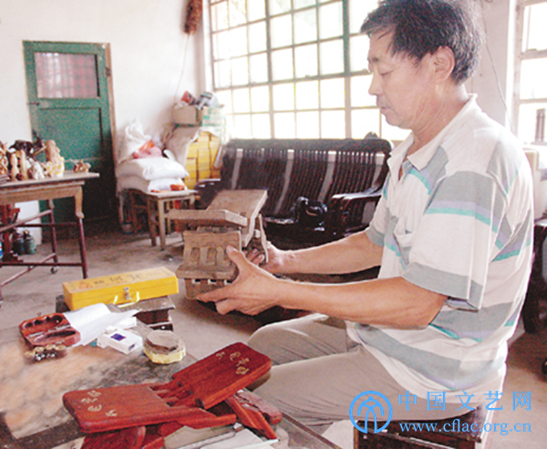 “瞎掰”最难的是凿槽和制梁,制作梁之间的缝隙稍不小心就会损伤到梁,前功尽弃。制作一个完整的“瞎掰”需要两天,制作出来后要抛光,同样缝隙之间的抛光也是最难的,因为缝隙太小了。抛完光后,才能上色打蜡,这样一套工序才算完成。