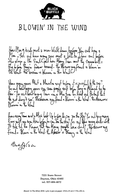 《答案在风中飘扬》歌词(钢笔、纸本) 鲍勃·迪伦