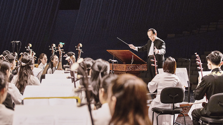 张天宇介绍,珠海演艺集团民族管弦乐团成立时间虽不到一年,但每位团员都是从全国各地精挑细选,不少成员还是何占豪亲自面试考核录用。“从今年5月开始的紧锣密鼓排练中,年轻人们全情投入,取得了很大进步。这批有专业素养与理想抱负的年轻人,也让何老重燃激情。 ”张天宇说。