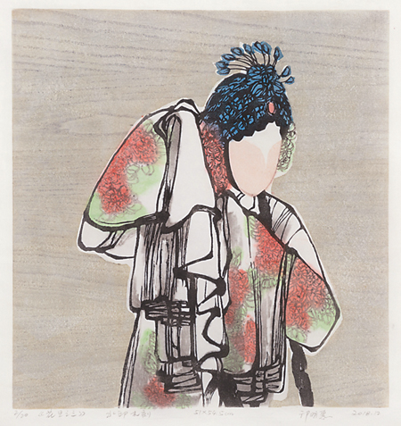 同样表现传统戏曲题材,韩东的《绽蕾暗香》与邝明惠的《花旦之三》可以相映成趣——韩东的作品放弃了对物象的现实表达,进入了对社会、人、动物之间关系的探讨,呈现版画家对现实社会的反省与反思,邝明惠的作品更注重版画语言与水墨趣味的融合。李影的《面对面》系列通过对日常生活的描绘,体现了这一代艺术家对生活和艺术的态度——画中反复出现的代表传统文化的典籍与窗外新崛起的建筑,仿佛艺术家在画面之外凝视着这一切。王允的《寂·2020》中的重构与守望表达了其对传统的眷恋和对当代文化的渴望:作品中古老的水乡、现代的都市相互呼应,留出艺术家对人与自然、人与社会、人与环境的深入思考的空间。