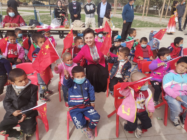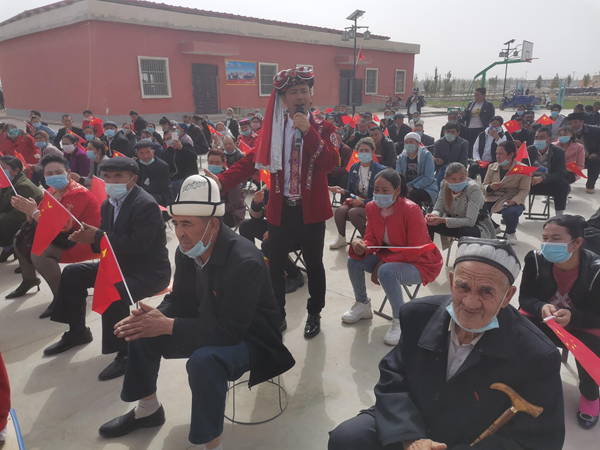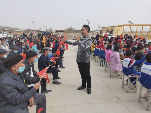 新疆音乐家协会刘超为萨依巴格村民演唱歌曲《最美》《红红的太阳升起来》