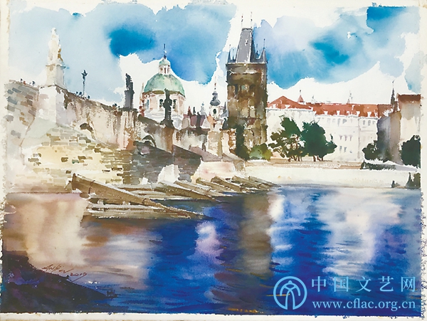 伏尔塔瓦河畔的布拉格古城(水彩) 2019年 安滨