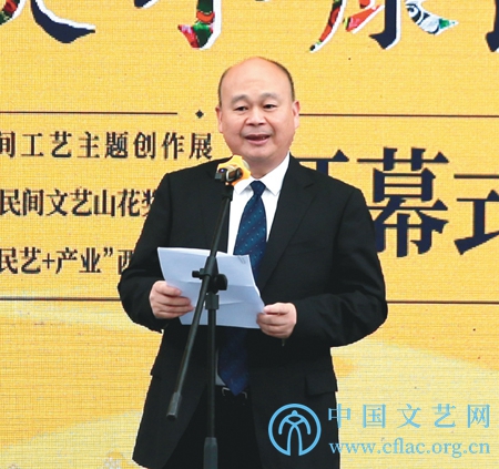金秋十月,是收获的季节,累累硕果是华夏儿女的汗水心血的结晶;金秋十月,也是佳节与佳节相逢的季节,阅不尽的画卷诵不完的诗篇。今天,我们相聚在古城西安,举办“最美小康路——中国西部民间工艺主题创作展”系列活动。在此,我谨代表中国民协,代表出席本次展览会的中国文联党组成员张雁彬同志,代表中国文联副主席、中国民间文艺家协会主席潘鲁生同志,谨向出席本次活动的嘉宾和民间文艺工作者们表示热烈的欢迎!向为展览筹备、组织和保障工作付出辛勤努力的陕西省文联、陕西省民协以及热情好客的西安人民表示衷心的感谢!