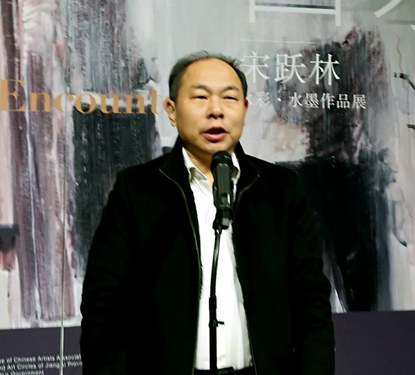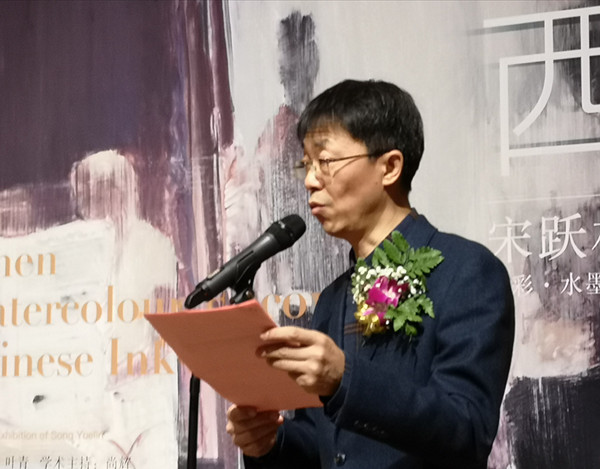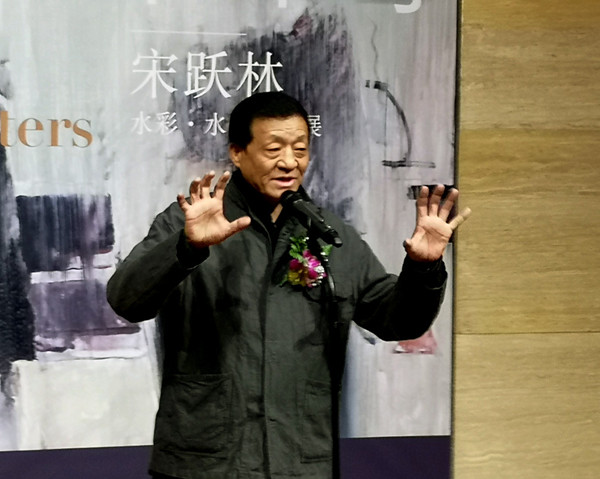 12月9日,“水路西东——宋跃林水彩·水墨作品展”在京开幕。图为艺术家宋跃林致答谢词。