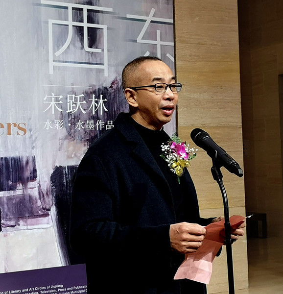 12月9日,由中国美术家协会水彩画艺术委员会、江西省文学艺术界联合会、九江市人民政府、江西省美术家协会主办,由九江市文学艺术界联合会、九江市文化广电新闻出版旅游局、中共九江市委人才工作领导小组办公室联合承办的“水路西东——宋跃林水彩·水墨作品展”在中国美术馆开幕,同期“宋跃林水彩·水墨作品学术研讨会”在中国美术馆7楼会议厅举行。