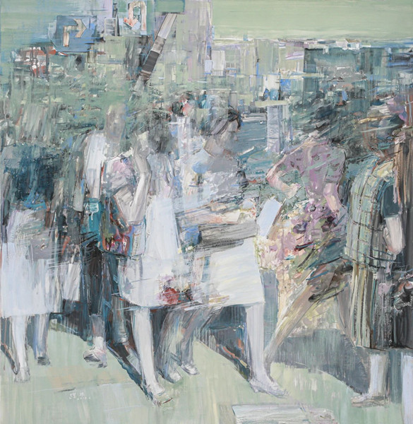 本次展览是宋跃林艺术探索之路的一次集中而全面的展示,在审美风格上,从早期以《老井·女人》为代表的具象写实,到在中国美术学院高研班学习时画的《绿桌子》为代表的具象表现,再到以《生日之二》《相聚之二》为代表的呈现明显东西方融合的“意识流”风格的审美;在材料探讨上,有早期的纯透明水彩,有水彩、水粉、丙烯等水溶性颜料综合应用,也有近年来在传统透明水彩中加入水墨元素的新尝试;在创作主题上,则是以庐山为母题的风景画与以东方亲情友情为主题的人物画,同时进行互为依托,形成了宋跃林艺术上并峙而立的高峰。从材料探索、技法变化,到风格审美的递进演变,宋跃林的艺术表现出一种持续的创新冲动,材料的探索引发技法的变化,从传统的透明画法到水彩的综合画法,表现出画家强烈的绘画个性、不甘于固守的精神和开阔的国际艺术视野。宋跃林的水彩画糅合了最传统、最纯正的英国水彩画法,却表达了前卫的审美和观念,他的作品以跳跃的笔法和色彩,不拘泥情节真实和场景上的真实,从主题创作到后来的减少叙述性的作品,再到现在的“意识流”创作方法,使人物和景物在画面中不只有画面关系,给观众带来亦真亦幻、似梦似幻又感同身受、实实在在的体验。