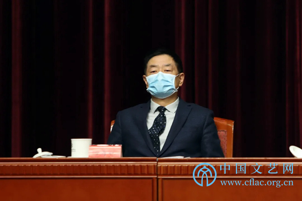 12月14日,中国戏剧家协会第九次全国代表大会在京召开。图为中国文联副主席、中国剧协第八届副主席孟广禄主持会议。