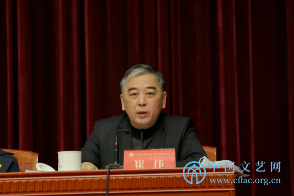 12月14日,中国戏剧家协会第九次全国代表大会在京召开。图为中国剧协分党组成员、秘书长、一级巡视员崔伟作章程修改的说明。