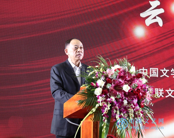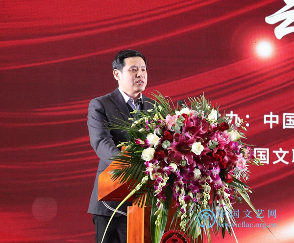 中国文联文艺评论中心主任徐粤春主持第五届“啄木鸟杯”中国文艺评论年度推优暨第二届网络文艺评论优选汇云发布典礼。 中国文艺网 胡艳琳摄