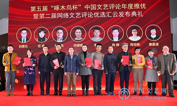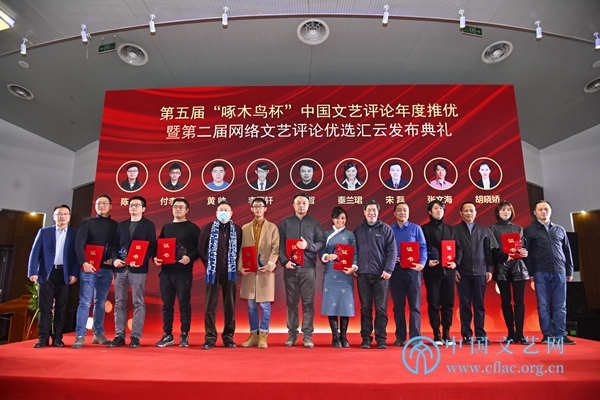 1月21日,由中国文联、中国文艺评论家协会主办,中国文联文艺评论中心、中国文联网络文艺传播中心承办的第五届“啄木鸟杯”中国文艺评论年度推优暨第二届网络文艺评论优选汇云发布典礼在京举行。中国文联党组成员、书记处书记、中国文艺评论家协会副主席董耀鹏,中国文艺评论家协会主席夏潮,中宣部文艺局副局长彭云,中国文联文艺评论中心主任徐粤春,中国文联理论研究室主任、中国文艺评论家协会副秘书长周由强,中国文联网络文艺传播中心副主任彭宽,中宣部文艺局理论文学处处长胡友笋,中国文艺评论家协会顾问路侃,副主席王一川、叶培贵、向云驹、张德祥、傅谨,以及爱奇艺、北京精彩、泰洋川禾、奇树有鱼等主创方、演职人员、播出平台的代表出席云发布典礼。夏潮宣读《中国文联、中国文艺评论家协会关于表彰第五届“啄木鸟杯”中国文艺评论年度优秀作品的决定》。云发布典礼由徐粤春主持。