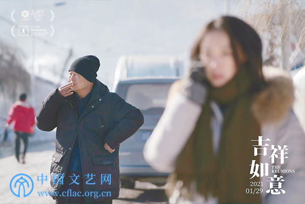 假如不是事先知道这是大鹏导演的作品,我相信很多人都会和我一样产生如下的疑惑:这是喜剧导演、演员大鹏的作品吗?这部冷峻中透着对人性审视的严肃作品真的是一部贺岁档喜剧?从观影感受直观地讲,这部影片非但不算是一部常规的商业贺岁片,就连基本的正剧也算不上。《吉祥如意》所呈现的仅仅是一场因为老人故去而引发的家庭风波,在真实记录了中国式家庭在当代信息化社会冲击下的无奈与叹息之外,也展现了导演客观且理性地对当下时代亲情的审视。当然,还有那随处可见的鹅毛大雪,寂寥无声地装点着影片中黯淡的世界。厚厚的雪一片一片落在地上,越积越深,很快就成为我们熟悉的东北黑土地上的一抹底色,渐渐模糊成天地间每天周而复始的一种常规调性,就像影片末了为了弥补缺失的亲情,匆匆相聚而最终又因为生计不得不各自分离的寻常人们。