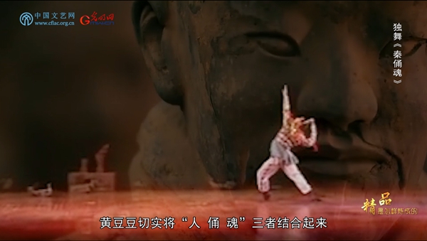1997年,20岁的青年舞蹈演员黄豆豆在第五届“桃李杯”舞蹈比赛上演出独舞《秦俑魂》。他塑造的气宇轩昂、英勇不屈的“秦俑”形象,赢得舞蹈界一致好评。这部作品,无论是舞台叙事的创编,还是动作技巧的安排,亦或是音乐与舞美的配合,都堪称中国古典舞发展史上浓墨重彩的一笔。