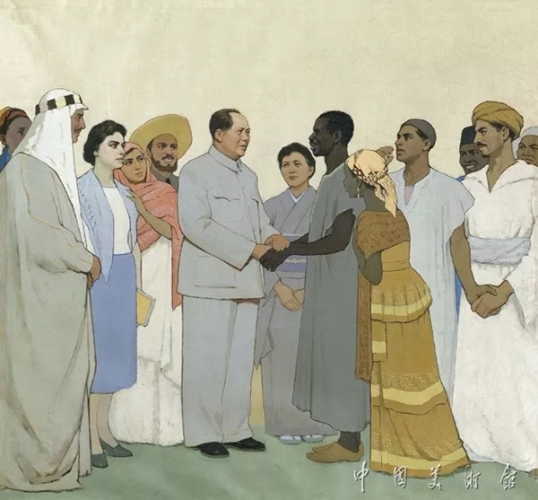 1960年,靳尚谊和伍必端合作《毛主席和亚非拉人民在一起》