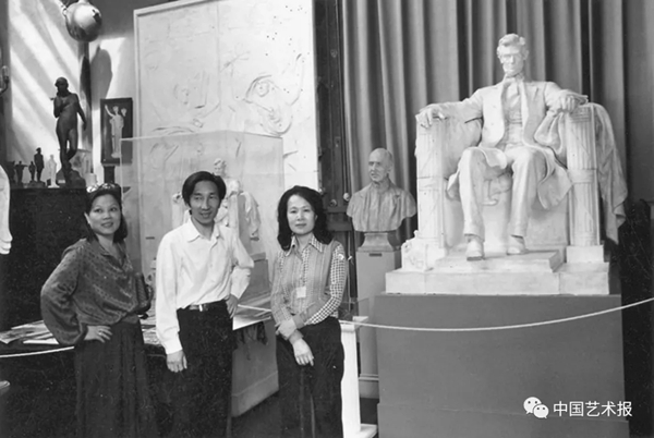 1982年,靳尚谊和杨淑卿、关寿美在美国参观