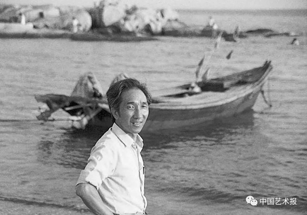 后来画《八大山人》就不太容易做了。因为花鸟画是空灵的,画面东西不多、笔墨不多。所以我画《八大山人》的时候,选择了他自36岁之后一直住的南昌青云圃——1963年,我和艾中信先生去井冈山时路过一次,决定创作时,我和弟弟又去考察了一次。青云圃水面很多,我就设计了一个八大山人坐在水塘和河流交汇处的构图,而且是阴天,用水天一色的感觉让画面空灵起来。